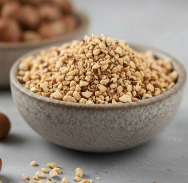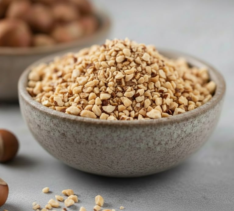 Description: Produced by cutting/crushing the natural hazelnut kernels into smaller pieces.
